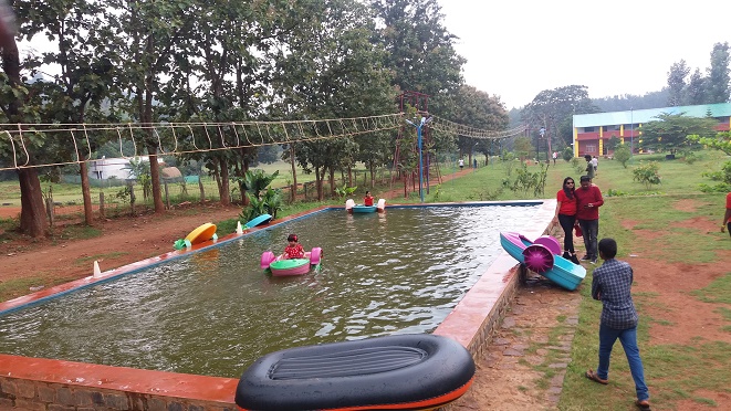 As the name suggests, there were several adventure sports for kids and adults alike at the Thrill Valley, such as zipline, darting, shooting, traffic ring walk, walking on the ropes (for kids), trompoline, wild twister bridge, zorbing, ATV and off-road track, paddle boat for kids etc. Most of the ladies in our group participated in as many adventure games as they could and enjoyed like school going girls, forgetting about their worries and tensions of home and office.